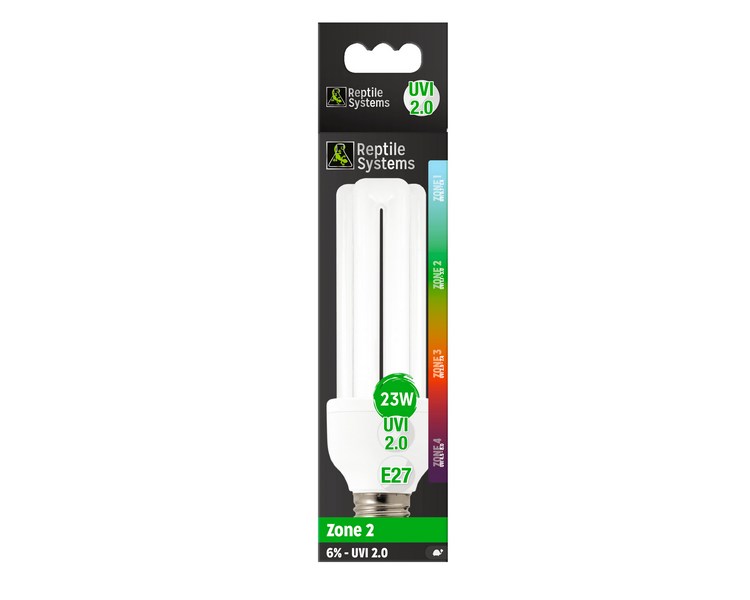 23 Watts 6% UVB 30% UVA 1.3% UVI (Average UVI at 30cm without reflector over 6 months of test in our long term testing facility.) High Output for the synthesis of Vitamin D3. Full spectrum, Excellent colour rendition. Use as a UV Basking Lamp. Need no ballast, use E27 standard screw fitting. Not dimmable.