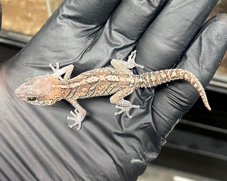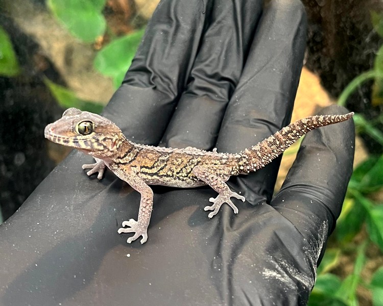 The pictus gecko, also known as the Madagascan ground gecko, is a small, terrestrial species native to Madagascar. It typically grows to about 4 to 6 inches in length, with a robust body and distinct patterns of brown, beige, and black spots or stripes, which help it camouflage in its natural habitat. These geckos are nocturnal, spending the day hidden under rocks or in crevices. Known for being hardy and easy to care for, they are popular in the pet trade. In captivity, they thrive on a diet of insects and need a warm, humid environment to mimic their natural conditions.