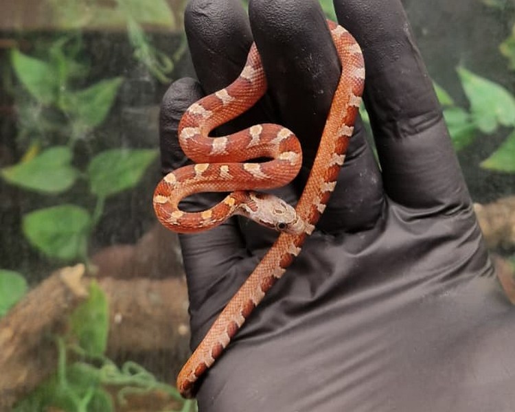Corn snakes (Pantherophis guttatus) are popular and beloved reptile pets, known for their vibrant colours, docile nature, and manageable size. Native to the southeastern United States, these non-venomous constrictors have become a staple in the pet trade. Corn snakes display a striking pattern of bold colours, often featuring vibrant reds, oranges, and yellows against a background of earthy browns or greys. With an average length of 3 to 5 feet, they are considered a manageable size for many reptile enthusiasts. Corn snakes are relatively easy to care for in captivity, requiring a secure and appropriately sized enclosure with a temperature gradient, a hiding spot, and a substrate such as aspen shavings. They are primarily fed a diet of mice or rats, with the frequency depending on their age and size. Due to their calm demeanour and ease of handling, corn snakes are an excellent choice for both beginners and experienced reptile keepers alike.