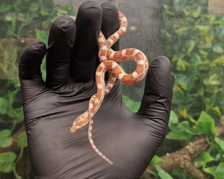 Corn snakes (Pantherophis guttatus) are popular and beloved reptile pets, known for their vibrant colours, docile nature, and manageable size. Native to the southeastern United States, these non-venomous constrictors have become a staple in the pet trade. Corn snakes display a striking pattern of bold colours, often featuring vibrant reds, oranges, and yellows against a background of earthy browns or greys. With an average length of 3 to 5 feet, they are considered a manageable size for many reptile enthusiasts. Corn snakes are relatively easy to care for in captivity, requiring a secure and appropriately sized enclosure with a temperature gradient, a hiding spot, and a substrate such as aspen shavings. They are primarily fed a diet of mice or rats, with the frequency depending on their age and size. Due to their calm demeanour and ease of handling, corn snakes are an excellent choice for both beginners and experienced reptile keepers alike.