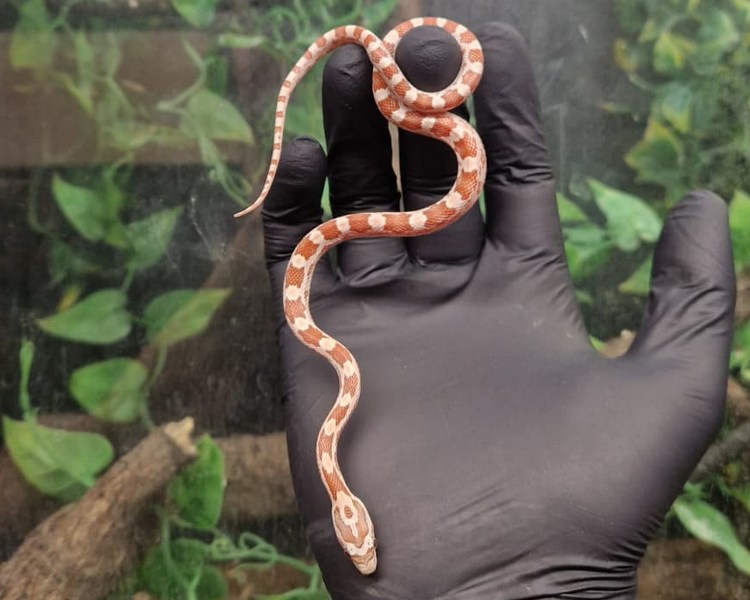 Corn snakes (Pantherophis guttatus) are popular and beloved reptile pets, known for their vibrant colours, docile nature, and manageable size. Native to the southeastern United States, these non-venomous constrictors have become a staple in the pet trade. Corn snakes display a striking pattern of bold colours, often featuring vibrant reds, oranges, and yellows against a background of earthy browns or greys. With an average length of 3 to 5 feet, they are considered a manageable size for many reptile enthusiasts. Corn snakes are relatively easy to care for in captivity, requiring a secure and appropriately sized enclosure with a temperature gradient, a hiding spot, and a substrate such as aspen shavings. They are primarily fed a diet of mice or rats, with the frequency depending on their age and size. Due to their calm demeanour and ease of handling, corn snakes are an excellent choice for both beginners and experienced reptile keepers alike.