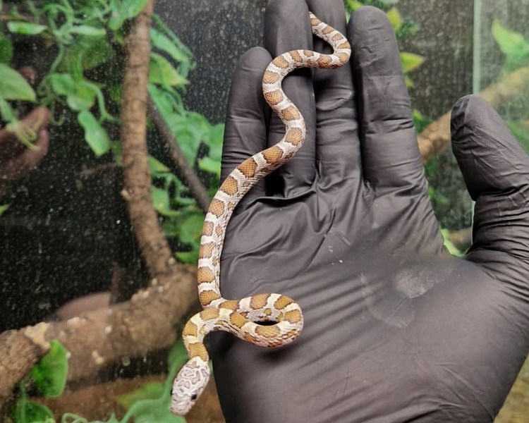 Corn snakes (Pantherophis guttatus) are popular and beloved reptile pets, known for their vibrant colours, docile nature, and manageable size. Native to the southeastern United States, these non-venomous constrictors have become a staple in the pet trade. Corn snakes display a striking pattern of bold colours, often featuring vibrant reds, oranges, and yellows against a background of earthy browns or greys. With an average length of 3 to 5 feet, they are considered a manageable size for many reptile enthusiasts. Corn snakes are relatively easy to care for in captivity, requiring a secure and appropriately sized enclosure with a temperature gradient, a hiding spot, and a substrate such as aspen shavings. They are primarily fed a diet of mice or rats, with the frequency depending on their age and size. Due to their calm demeanour and ease of handling, corn snakes are an excellent choice for both beginners and experienced reptile keepers alike.
