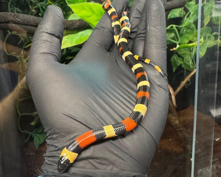 The Pueblan milk snake (Lampropeltis triangulum campbelli) is a colorful, non-venomous snake native to the arid, semi-arid regions of southern Mexico, especially Puebla, Morelos, and Oaxaca. It displays vibrant bands of red, black, and white or yellow, which mimic the appearance of venomous coral snakes—a form of Batesian mimicry that helps deter predators. Pueblan milk snakes are known for their docile temperament, making them popular pets among reptile enthusiasts.