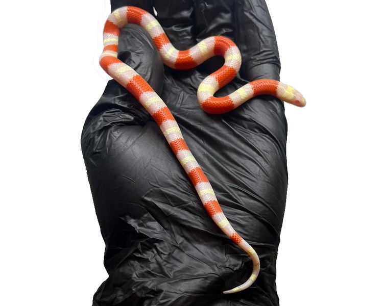 The Pueblan milk snake (Lampropeltis triangulum campbelli) is a colorful, non-venomous snake native to the arid, semi-arid regions of southern Mexico, especially Puebla, Morelos, and Oaxaca. It displays vibrant bands of red, black, and white or yellow, which mimic the appearance of venomous coral snakes—a form of Batesian mimicry that helps deter predators. Pueblan milk snakes are known for their docile temperament, making them popular pets among reptile enthusiasts.